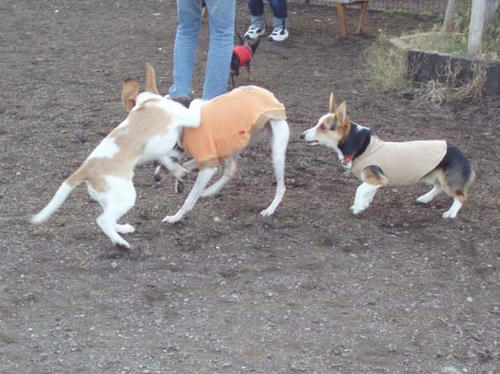 どうやら「わんこさわり競争」をしているらしい。。。。。
