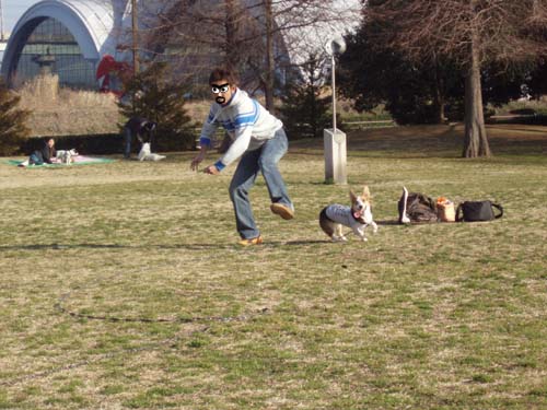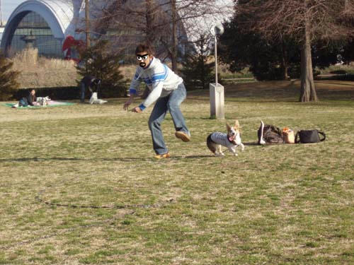 たっぷりフリスビーを満喫したあとは、ちょっとだけのつもりでドッグランへ。