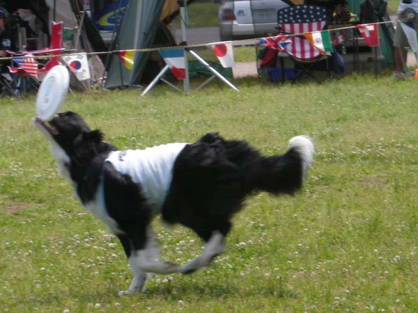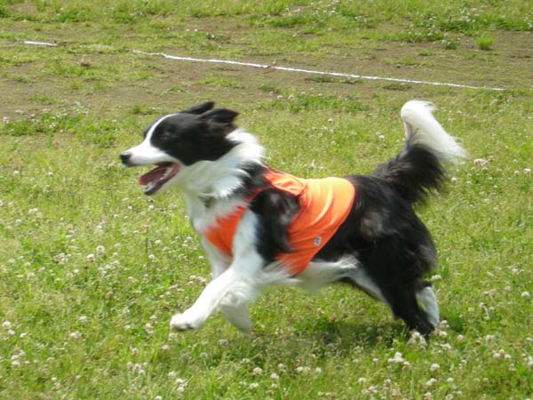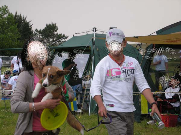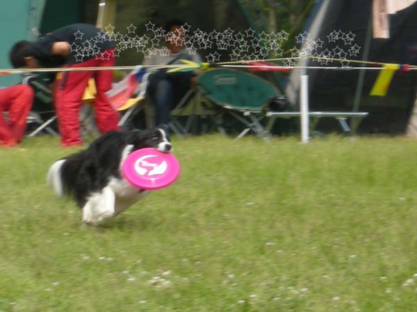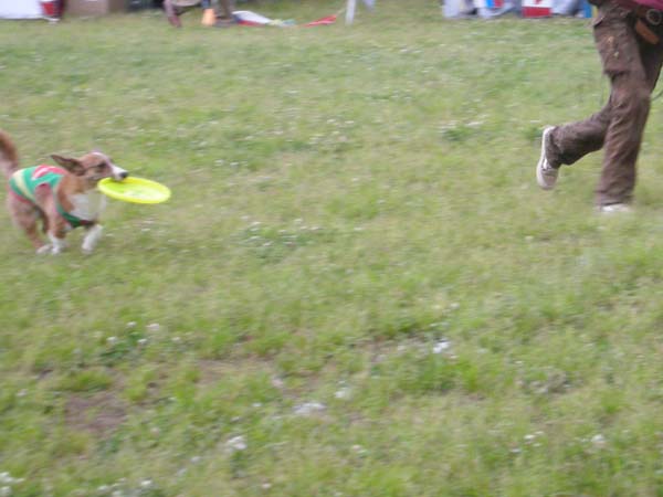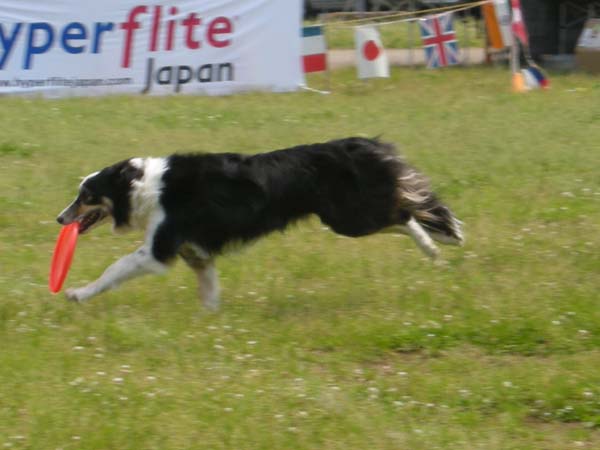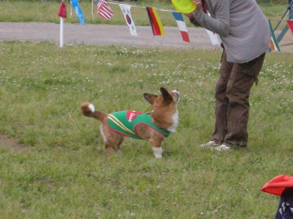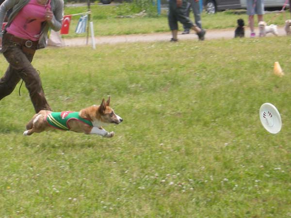 パパの投げるディスクを一生懸命追いかけて持って帰ってくる大豆