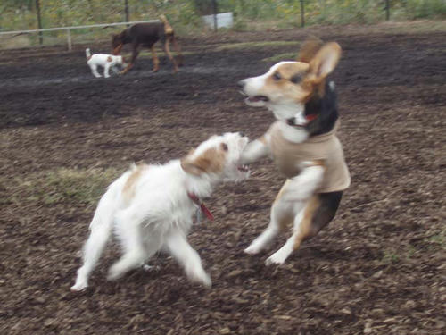 この頃わん見知りしなくなったぽんずはドッグランに着くや遊びまくりです。