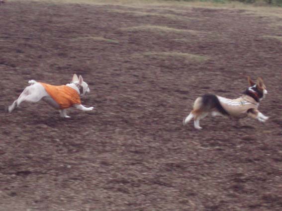 で、フリスビーで遊んでいると、フリスビーを一緒に追いかけてくれる