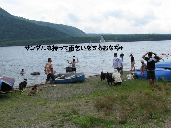 あまりに楽しすぎて、サンダルを持って雨乞いするおなちゅ。