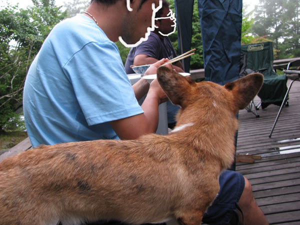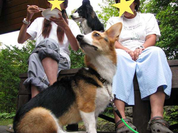 狙う!肉を狙いまくりのわんずたち。