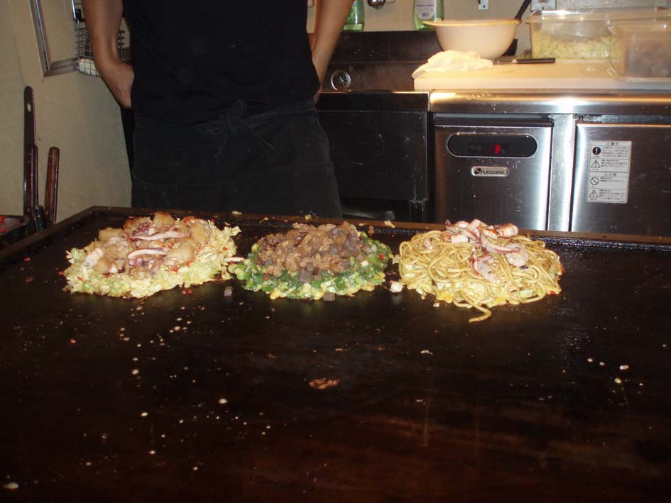左から「とんと焼き」「ねぎ焼き」「モダン焼き」