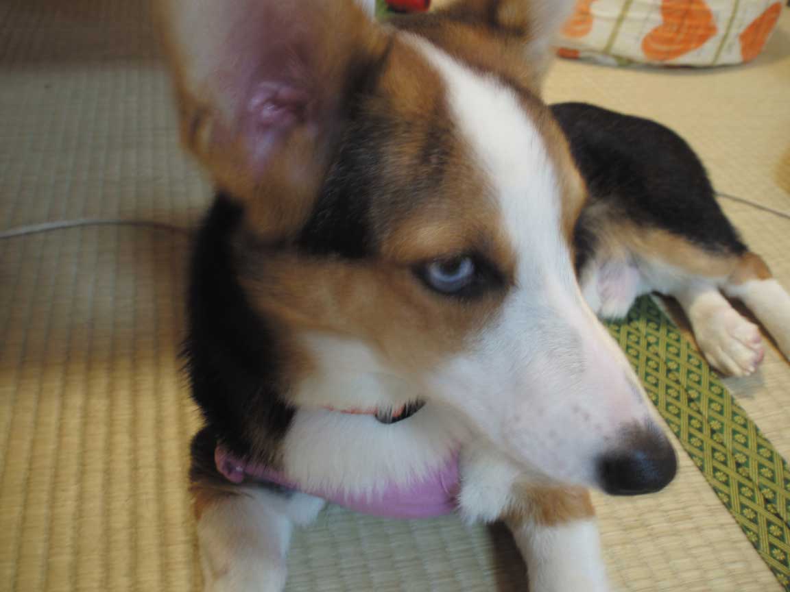 仕方がないのでお散歩に2人で行き、疲れきったぽんずにご褒美です