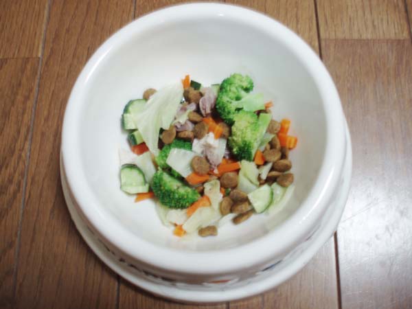 すなぎも・とりむね・にんじん・ブロッコリー・きゃべつ・きゅうりとカリカリ