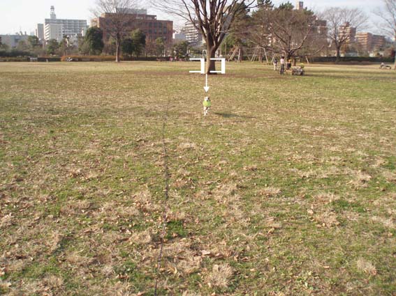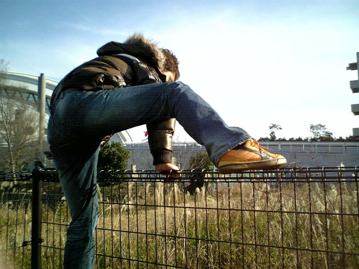 格好良く投げようとして、フリスビーがフェンスから飛び出てしまったため
